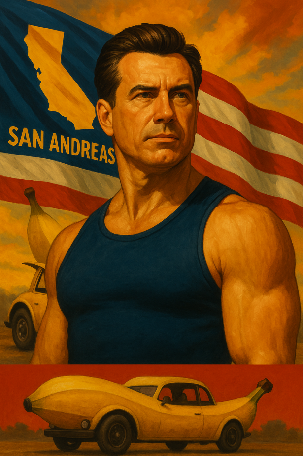 CJ Posted August 26, 2025 Posted August 26, 2025 PRESS RELEASE – OFFICE OF THE GOVERNOR For Immediate Release San Andreas – Weazel News Political Desk Governor Nils Johanson has today officially unveiled his new state portrait, an oil-painted masterpiece that captures the Governor’s “strength, leadership, and ability to flex in a tank top”. The artwork, revealed to thunderous applause and mild confusion, depicts the Governor standing proudly before the San Andreas flag, his jawline as sharp as state budget cuts. Behind him, citizens will notice the inclusion of a banana-shaped car - a bold artistic choice which the Governor’s office claims symbolizes “both the absurdity of modern crime and the fruit of San Andreas’ future prosperity.” In his statement, Governor Johanson declared: “This portrait is not about me. It’s about San Andreas. It’s about freedom. It’s about the fact that we live in a state where even a banana can be a vehicle of change.” The Governor further emphasized that the piece will hang in the State Capitol, where schoolchildren and lobbyists alike can be inspired by its message of patriotism, muscle, and potassium. Political analysts are already calling the painting “the most important cultural work since Vinewood’s 1983 billboard of a monkey smoking a cigarette.” Meanwhile, local citizens have mixed reactions - some praising the Governor’s commitment to fitness, others asking why tax dollars are funding banana cars in official artwork. The portrait is now available for public viewing, with limited-edition prints to be sold at gas stations and rest stops across the state. Weazel News will continue to cover the Governor’s crusade against crime, corruption, and unhealthy snack choices.